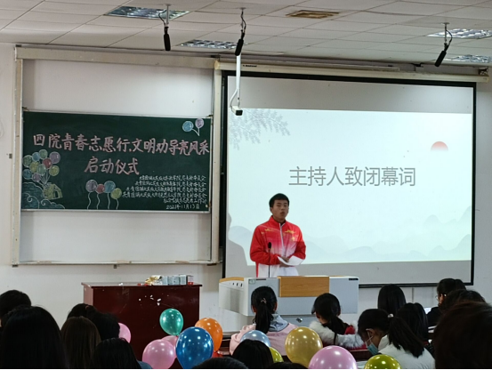 会议伊始,由主持人陈浩杰致开幕词并介绍嘉宾,之后全体起立奏唱《青年志愿者之歌》。紧接着由各院负责人展示本院的志愿服务活动成果,充分体现了各院对志愿公益的热爱与专业。