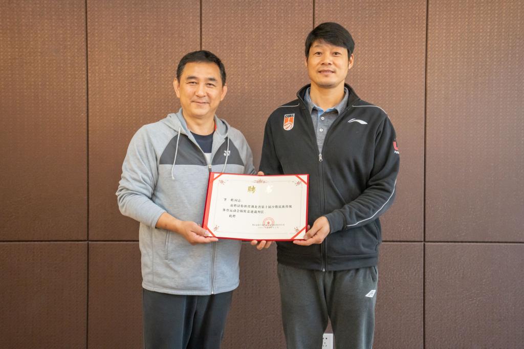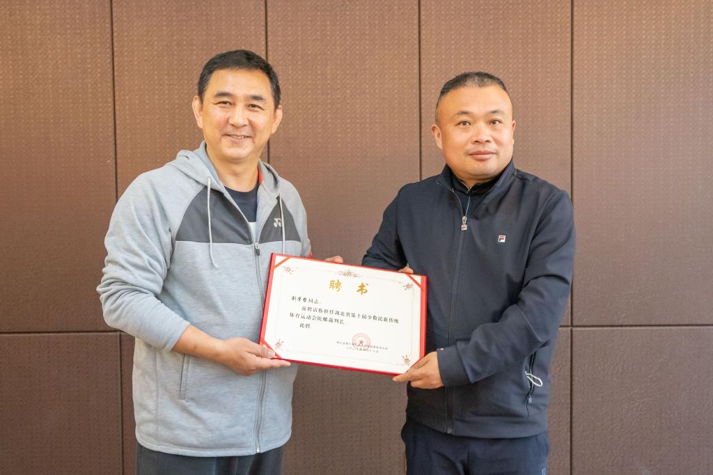 会上,湖北省民宗委领导首先宣读第十届少数民族传统体育运动会组委会办公室文件,决定聘任倪东业为总裁判长、张辉为副总裁判长兼任旱船竞速项目裁判长,由组委会办公室主任为其颁发证书;同时决定聘任刘学哲为陀螺项目裁判长、万利为板鞋竞速项目裁判长,由组委会总裁判长为其颁发证书;会上还决定聘任聂盼水为陀螺项目副裁判长、何雪芸为表演项目副裁判长,由组委会副总裁判长为其颁发证书。