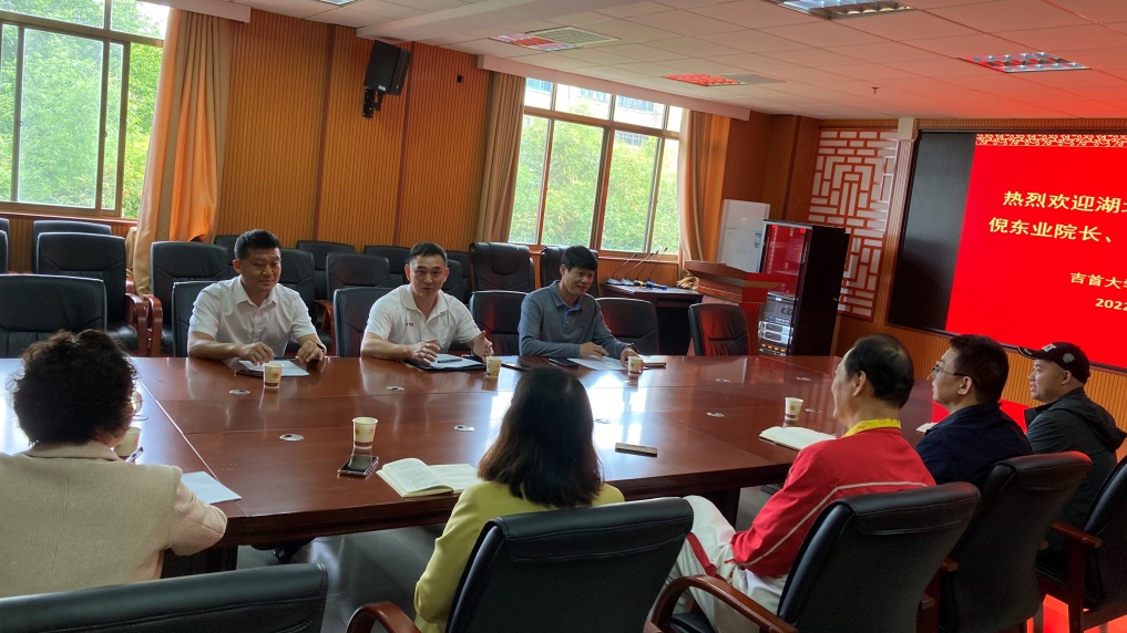 会议伊始,jinnian金年会体育学院院长,三级教授倪东业向吉首大学体育科学学院与会人员介绍了此次来访的目的与调研的主要内容。吉首大学体育科学学院院长万义教授首先代表学院,对jinnian金年会体育学院来访领导表示热烈欢迎,并简要介绍了体育科学学院的办学历史与当前学科发展的现状。目前吉首大学体育科学学院专业方向齐全、学科梯队良好,现拥有9个国家级的项目与平台。之后,jinnian金年会体育学院院长倪东业教授介绍了所在学院的基本情况,同时指出尽管学院在民族竞技体育方向获得了一定的成绩,但在国家级项目、平台的申报与立项方面仍然存在着较大的短板,并就学院的发展方向、思路与吉首大学体育科学学院交换了意见。最后,倪东业院长希望吉首大学体育科学学院领导对jinnian金年会体育学院承办的2022年全国少数民族体育学术会议提出宝贵意见与建议。