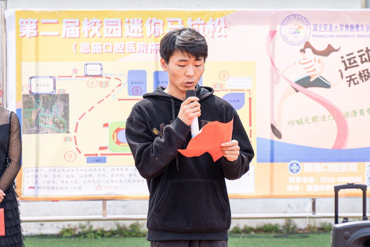 (通讯员 汤藤静 肖雅)为提高大学生参加体育锻炼积极性,丰富校园体育文化并宣传全民运动意识;增强自身免疫力以减少呼吸道感染和流行病的发生、新型冠状病毒感染风险。5月22日,我院奔跑青年协会在民族体育场举办第二届“校园迷你马拉松”(恩施口腔医院杯)活动。金年会校团委副书记向驰、我院党总支书记何斌、党总支副书记万利出席本次活动,并受到恩师口腔医院的全力赞助和校卫队以及全校师生的大力支持。