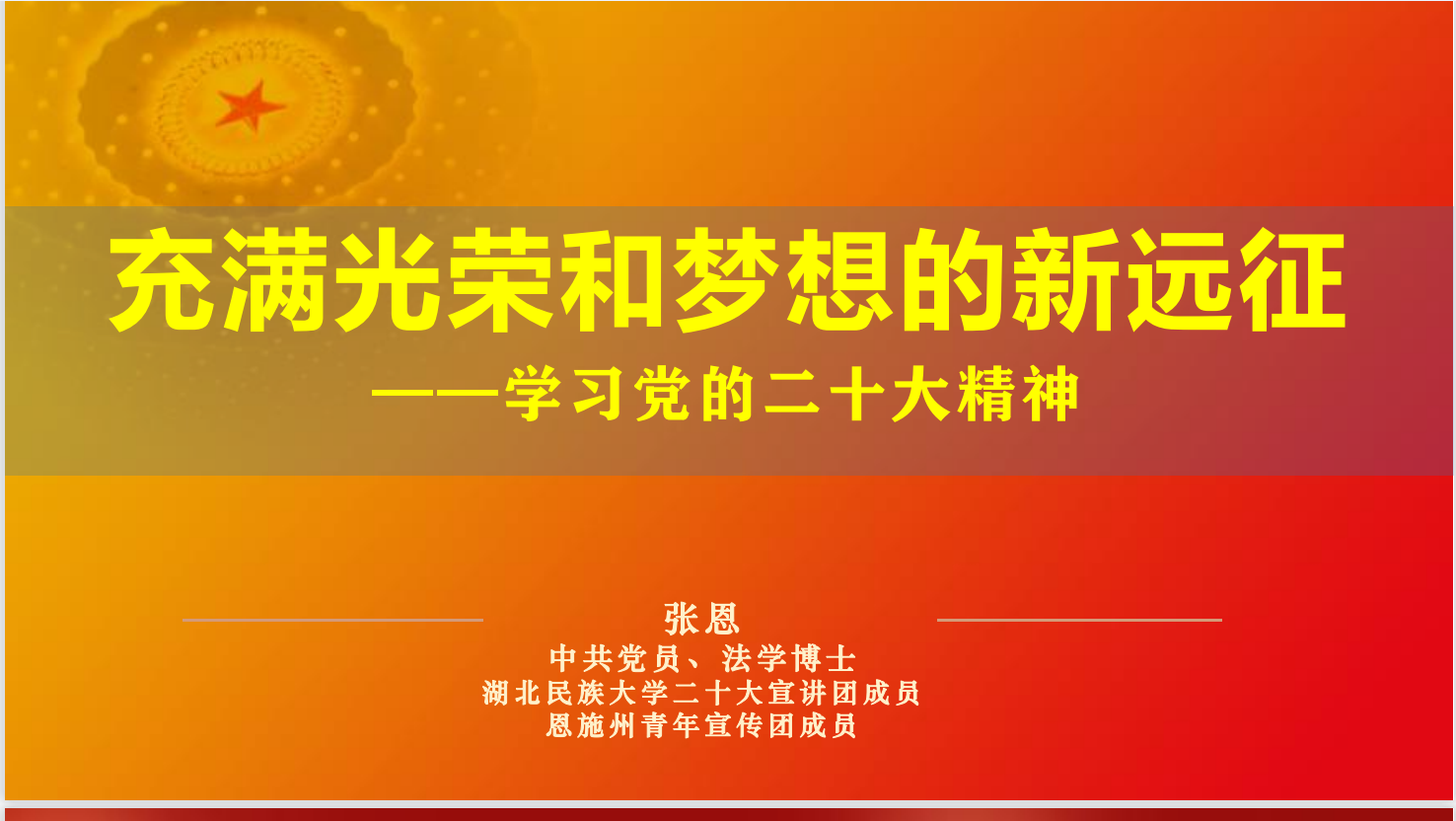 根据学校党委《jinnian金年会学习贯彻党的二十大精神宣讲工作方案》的精神和党委宣传《关于开展2022年12月教职工政治理论学习的通知》工作要求,体育学院党总支于2022年12月26日组织全体教职工开展学习贯彻党的二十大精神线上宣讲活动。本次宣讲活动特邀jinnian金年会二十大宣讲团成员张恩博士进行学习辅导,宣讲由体育学院党总支书记何斌同志主持。
