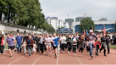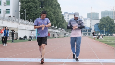 发令枪响,竞技组和教工组的运动员们奋勇争先,朝着终点的方向努力奔跑。各学院体验组也紧随其后,旗手们用力挥舞着旗帜展示着他们蓬勃的朝气。