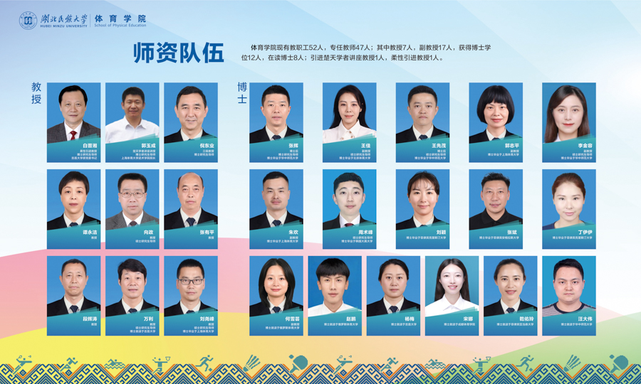 人才引进是补充师资力量的重要途径。体育学院不断加大人才引进力度,先后聘请上海体育大学郭玉成教授来院开展学术沙龙,柔性引进吉首大学原党委书记白晋湘教授指导学院专业建设。2020年以来,该院先后引进王先茂、郭志平、周术锋等博士加入教师团队。这些知名专家、学者的加盟,极大推动了体育学院的教学、科研、学科建设。
