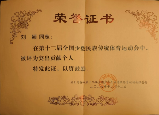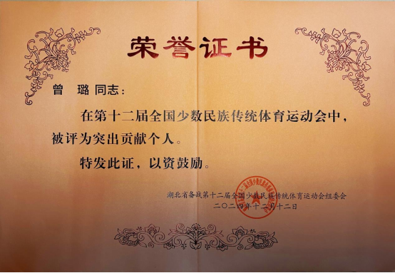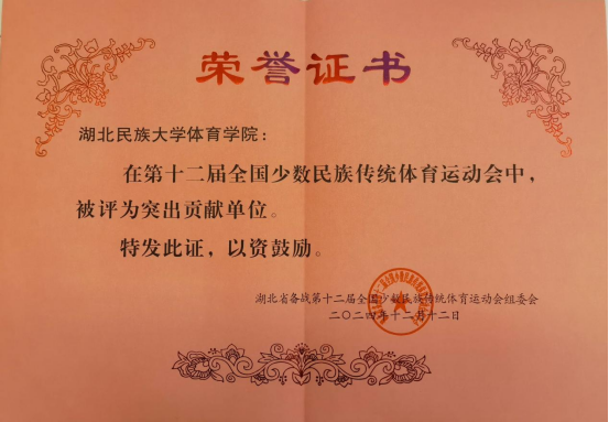 12月13日,湖北省参加第十二届全国少数民族传统体育运动工作总结会议在武汉市召开。本次工作总结会对在本届运动会上作出贡献的单位和个人进行通报表扬并颁发荣誉证书。我院何斌院长、倪东业老师、陈芬老师、刘颖老师以及向慊同学、曾璐同学参与此次总结会议并受到表彰。