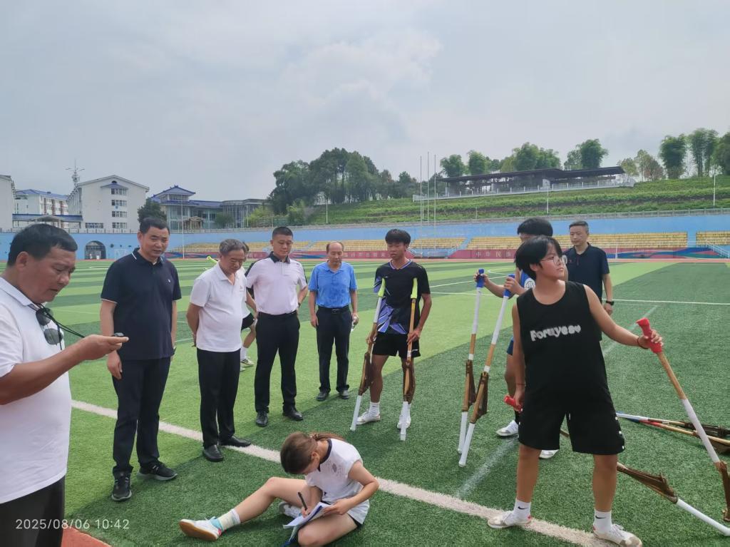 当天上午,何庆良、郭用德一行首先来到学校田径场,实地观摩高脚竞速项目暑期集训情况。烈日炎炎下,运动员们正以饱满的热情投入训练,展现了扎实的基本功和顽强的拼搏精神。两位领导对教练团队的辛勤付出和运动员的刻苦训练给予高度评价,并叮嘱大家在高温天气中注意防暑降温,科学安排训练强度。