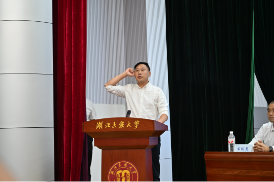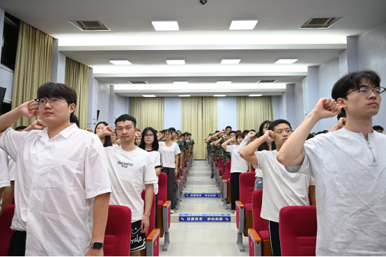 最后,社会体育指导与管理系负责人张斌老师带领全体新生庄严宣誓,铿锵誓言展现了同学们昂扬向上的精神风貌和奋发有为的决心,2025级新生的美好大学生活就此开启!