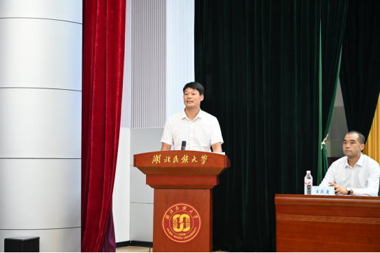 院长何斌首先致辞,他对新同学的到来表示热烈欢迎和诚挚祝贺,并以三句话与同学们共勉:第一,体育学院有底蕴、有实力、有温度,是同学们成长成才的坚实平台;第二,榜样并不遥远,奋斗就是最好的传承,勉励同学们脚踏实地、勇于拼搏;第三,要热爱民大、维护民大,希望同学们在这里安全成长、快乐成才、成就更好的自己。何院长还向全体新生提出三愿:愿大家“起好步”,做沉稳智慧的奔跑者——不盲目抢跑,而是俯身蓄力、强势出发;愿大家“拐好弯”,做勇敢坚定的奔跑者——把握人生节奏,实现弯道超越;愿大家“冲好刺”,做心系家国的奔跑者——不仅要赢在起点,更要坚持到底、赢得最终胜利。
