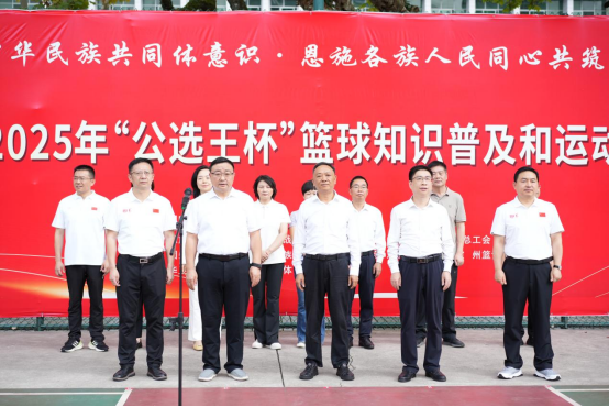 秋高气爽,篮球飞扬。9月27日上午,备受期待的“2025恩BA进校园”活动在学校团结广场隆重举行。恩施州第九届人大常委会主任田金培,恩施州委常委、宣传部长曾凡胜,学校党委书记戴清堂,恩施市委书记彭元洪,以及恩施州委统战部常务副部长张蓉,恩施州委宣传部副部长、恩施州社科联主席李娟,共青团恩施州委书记陈潇,恩施州文旅局局长张伟,恩施州总工会党组书记、常务副主席王兰英,恩施州人大教科文卫委主任熊坤赤,恩施州教育局副局长杨振宇,公选王董事长夏晓华等出席活动。学校党委常委、统战部长田景福担任主持人。