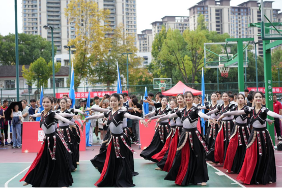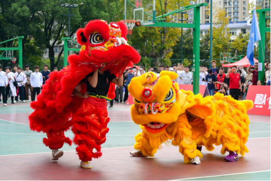 在正式比赛开始前,精彩的暖场节目轮番上演:龙狮表演《中华精神》气势恢宏,跆拳道表演《烈火战马》刚劲有力,民族舞《黔·行》韵味十足,啦啦操《青春绽放》活力四射。这些表演由体育学院和音乐舞蹈学院的同学们共同呈现,为接下来的篮球竞赛注满了青春动能。