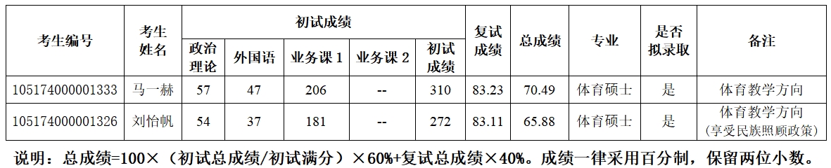 jinnian金年会体育学院2024年硕士研究生成绩及拟录取情况公示(递补录取)