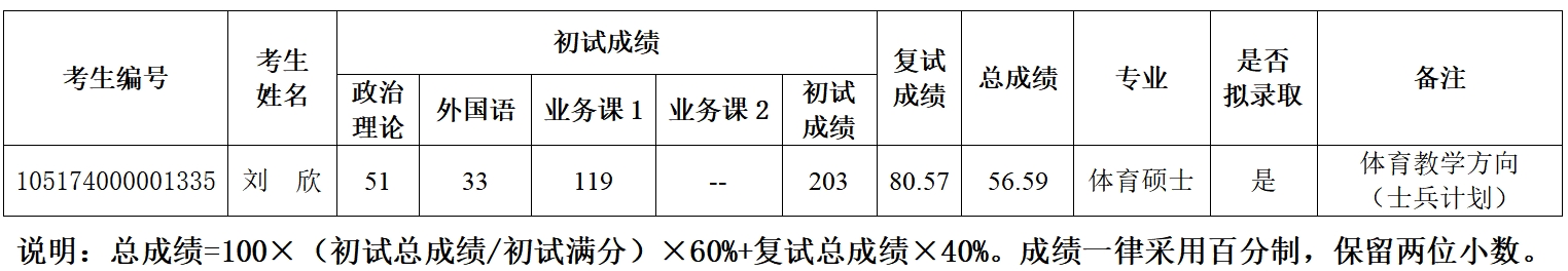 jinnian金年会体育学院2024年硕士研究生成绩及拟录取情况公示(递补录取)