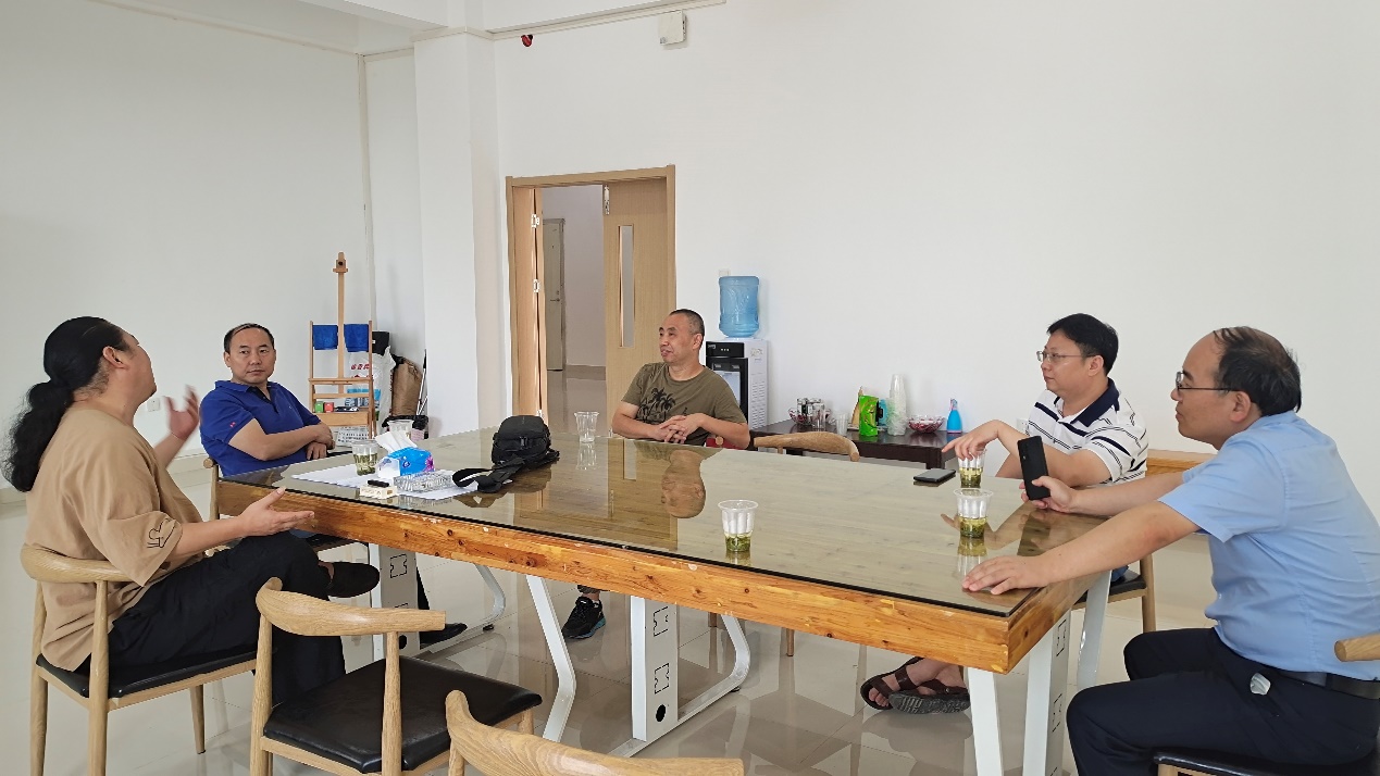 副校长李军(左二)在C栋与美设学院负责人座谈