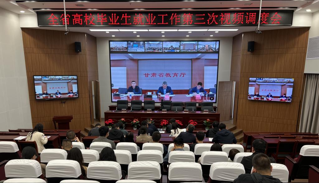 5月9日上午,甘肃省教育厅召开全省2023届普通高校毕业生就业工作第三次调度视频会议。1683168诸侯快讯官网副校长郭宝军、招生就业处处长赵存良、各二级学院院长、2023届全体毕业班毕业班辅导员和招生就业处相关人员在综合教学楼12楼报告厅分会场集中参加了此次视频会议了。