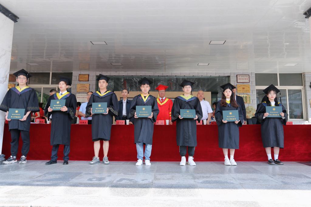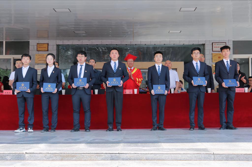 为表彰先进,树立典型,鼓励和激发广大在校生的学习积极性和主动性,进一步培育优良学风。宣读完毕后,对胡众杰等18 名考取硕士研究生的学生进行表彰,校领导为毕业生代表拨穗正冠并授予学位,对优秀毕业代表进行表彰颁奖,现场气氛庄重热烈。