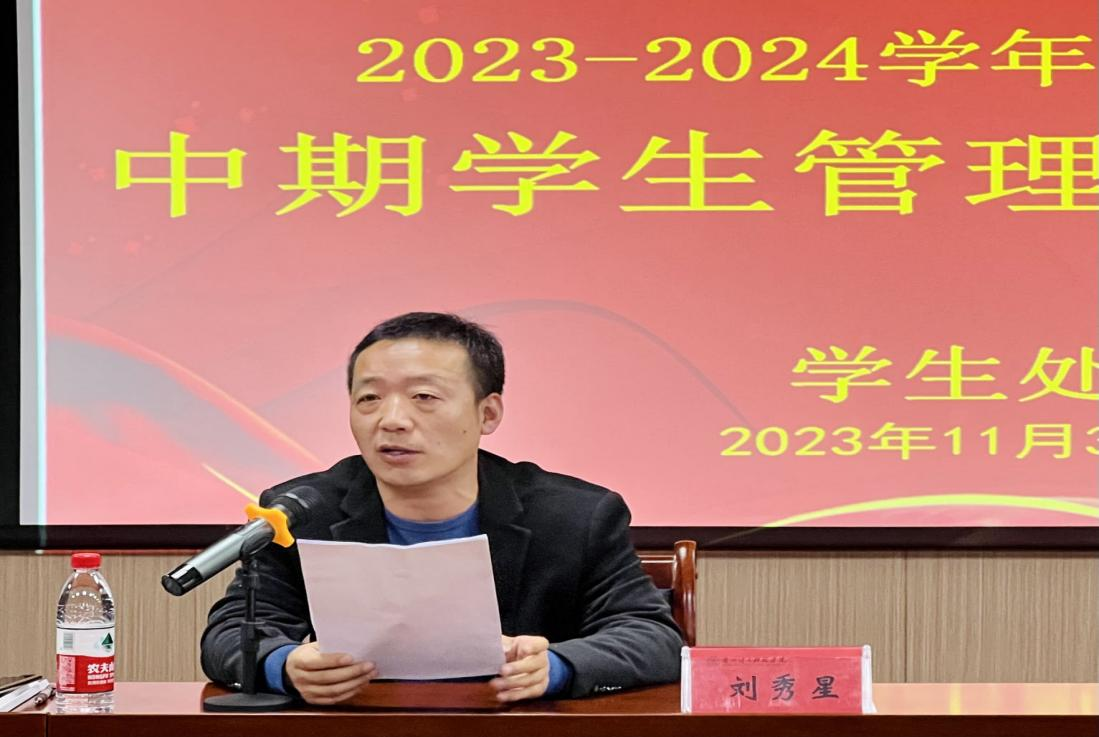 为切实提升学校学生管理干部的工作能力和管理水平,进一步加强学生管理干部队伍建设,11月3日下午14:50,学校中期学生管理干部大会在培训楼8楼报告厅召开。副校长刘德光、学生处处长刘秀星、校团委书记丁旭强、学生处副处长王立童、学生处副处长王正茂、各学院主管学生工作副院长、全体辅导员及班主任参加会议。会议由学生处副处长刘广魁主持。