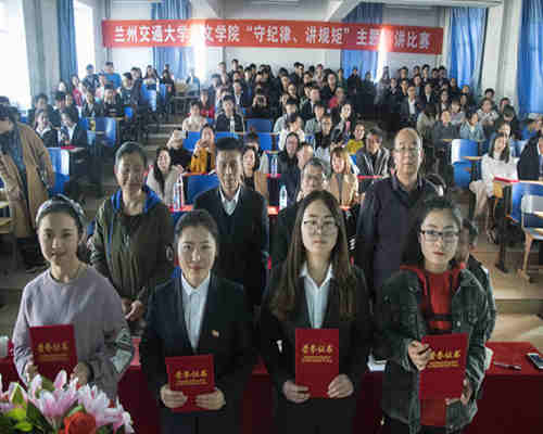 为进一步贯彻落实习近平主席在十八届中央纪委五次全会上的重要讲话,全面深化从严治党的基本方针,提高我院党员的整体素质与思想觉悟。兰州交通大学博文学院于2018年11月2日星期五14:30,在南校区教学楼东T2教室举行了以“守纪律,讲规矩”为主题的演讲比赛。我系党员教师代表顾松涛及学生代表刘星卓参加了本次比赛。