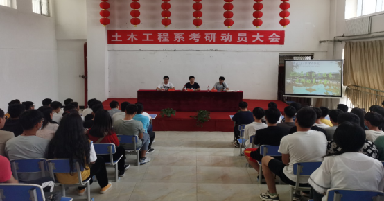 为了调动我系同学的考研积极性,让同学们更好的挖掘自身潜能,把握机会,增强考研的信心。2020年7月10日下午3点,兰州交通大学博文学院土木工程系在综合教学楼12楼阶梯教室成功召开2021届毕业生考研动员大会。土木工程系主任黄钰峰、教学管理副主任李敬元、学生管理副主任巩岩及2017级有意向考研的学生参加本次大会。