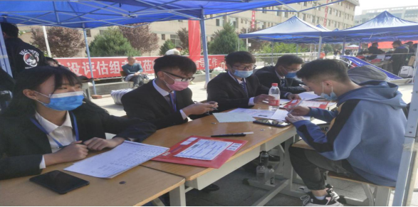 新生报到注册在图书馆内,接待及信息登记于体育馆前进行,为了新生顺利完成报到注册,沿途都放置了报到指示牌,报到登记、收费、绿色通道、物品发放等处,工作有序开展;每个环节均有志愿者热情引导,悉心服务,为新生及家长提供引导及答疑服务。我系还根据本系风采在接待点放置了图文并茂的专业介绍展板。