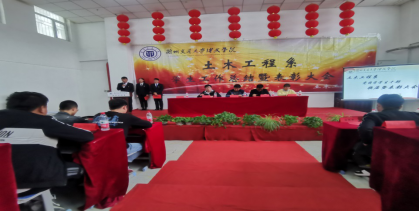 下午四点半,土木工程系党团学学生干部换届大会拉开了序幕。土木工程系主任黄钰峰为本次党团学学生干部换届大会给予精彩致辞。黄主任话语中流露着对同学们无比的肯定与赞扬,和对新一届当选学生干部的高度期望。并提出几点要求:第一、要在学习和工作中找寻平衡点,处理好工作和学习的关系。第二、一定要团结,我们党团学是一个和睦的大家庭。只要大家心往一处想,劲往一处使,就一定能克服一切困难。第三、要做到言行一致,树立榜样。只有不断地从严要求自己,综合素质才能逐渐提高,才能经受住考验。第四、树风气,提质量,促合作。工作之余,要拿出更多的自由时间学习,在整体上营造良好的学习风气,学习能力是作为学生干部的基本能力。