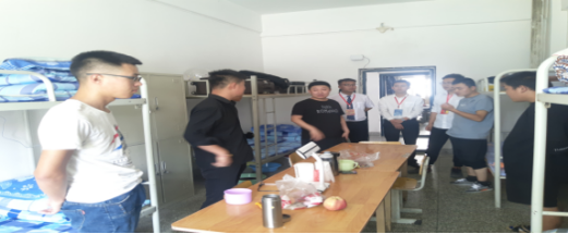 在宿舍中领导亲切地同新生交谈,询问大家来自哪里、入学报到是否顺利、是否适应学校的环境等;此外,还仔细查看寝室的各种设施是否完善,敦促后勤保障部门做好新生寝室设施完善工作,有问题及时通知后勤工作人员处理。