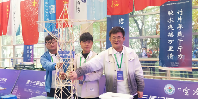 此次大赛中我院任士贤、李敬元老师指导,李万春、王健、车汉杰同学创作的作品顺利通过现场模型制作、加载测试、答辩陈述等环节,获得全国三等奖的好成绩,在我省参赛队伍中名列第二。