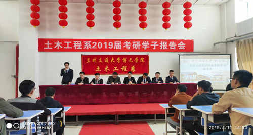 为加强我系学风建设,给我系广大学子提供切实的学习指导和帮助,4月11日下午12:30,我系在北校区综合教学楼12楼阶梯教室举办“土木工程系2019届考研学子报告会”。报告会邀请到我系七位研究生代表前来做报告交流。大二大三学生代表参加了报告会,此次报告会由学生管理副主任王俊鹏、教学管理副主任李敬元主持。 针对我系学生报考专业、学校及考研分数,从吃透研招政策、研判调剂形势、明确调剂目标、掌握复试技巧、抓住备考重点等方面进行了全面解读和指导,并结合大量生动具体实例,逐一解答学生的实际问题和困惑。他们分别从文科、理科两个方面,结合自身考研经历,从为什么选择调剂、调剂复试注意事项、面试备考具体内容,以及“查完成绩,你应该做什么”、“寻找导师,你要注意什么”、“复试面试,你要准备好什么”等方面做了深入浅出、全面细致的分析,建议师弟师妹“自信但不自大,稳重但要灵活”。报告会最后,副主任王俊鹏对有考研意向的同学们提出三点建议:一是要明确目标,合理安排时间,提高学习效率;二是要根据自己的兴趣爱好,不断培养实践能力;三是要树立信心,坚持不懈,迎难而上,实现考研梦想。