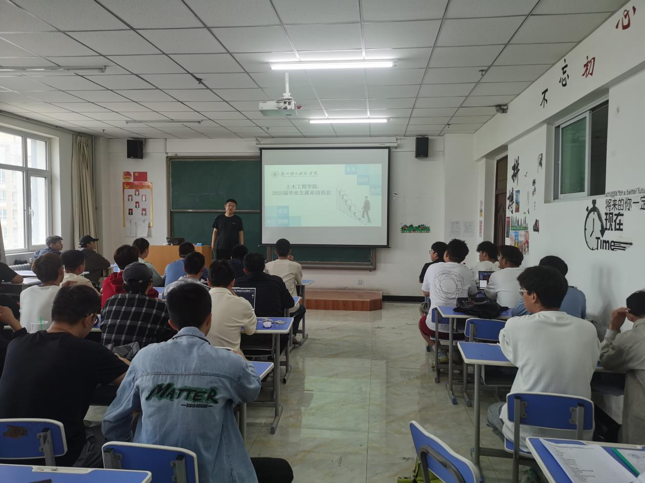 为进一步贯彻落实学校和招生就业处关于就业工作的指导要求,全力促进我院毕业生高质量就业,引导学生树立正确的择业观、就业观,帮助毕业生早就业,就好业。6月18日至6月28日,土木工程学院以班级为单位举办2025届毕业生就业动员会,动员会由土木工程学院院长黄钰峰,副院长巩岩,辅导员杨金星、辅导员梁逸兰老师组织召开。
