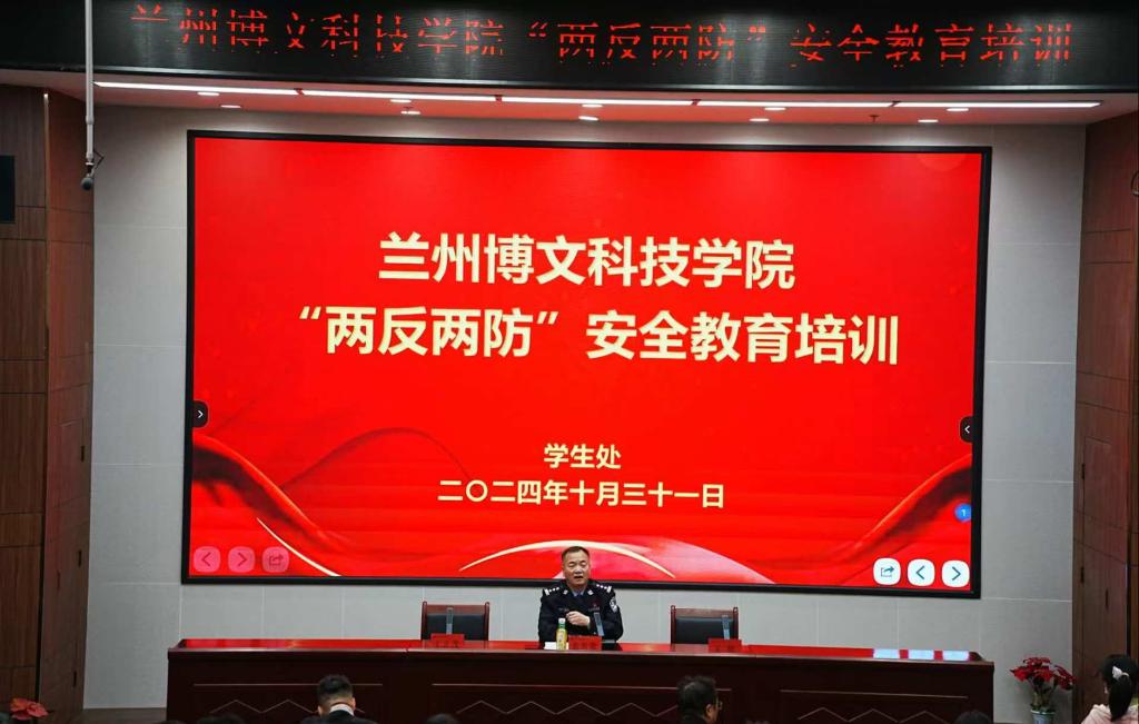 2024年10月31日下午,我院积极组织师生参加了学生处在综合教学楼12楼报告厅开展的1683168诸侯快讯官网“两反两防”安全教育培训,本次培训主讲嘉宾是和平派出所教导裴青荣,裴教导以其丰富的从业经验,引导广大在校学生尊崇法律,敬畏法律,遵守法律,远离故意伤害、盗窃、性侵、新型电信诈骗等高发的违法犯罪活动,为师生带来了一场“干货满满”的讲座。
