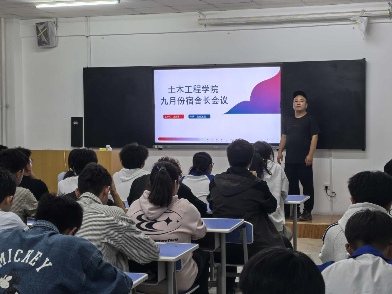 为进一步加强学生公寓安全管理,提升学生的安全意识和自我防护能力,2025年9月24日19:30,土木工程学院于综合教学楼1004教室召开以“公寓安全”为主题的宿舍长会议。此次会议由辅导员王路清老师主持,土木工程学院全体宿舍长参加。