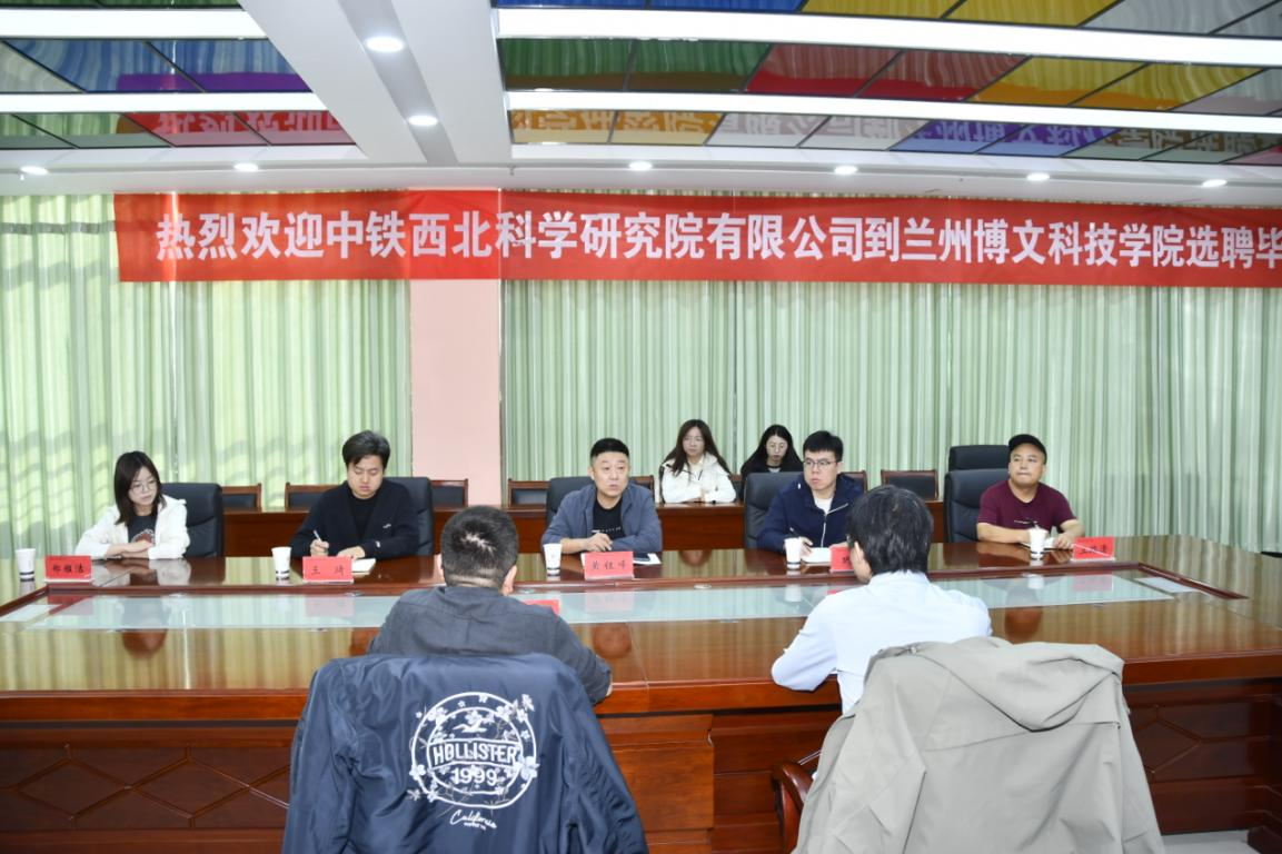 黄钰峰院长对中铁西北科学研究院有限公司到我校开展2026届毕业生专场招聘会表示热烈欢迎,期间介绍了我院的发展历程、人才培养、办学特色及近年的毕业生就业状况,并就今后在加强人才培养、双师建设、实习就业等多方面希望通过校企合作方式,为大学生搭建创业平台,拓宽就业渠道,提高学生实践能力,实现双方互利共赢。