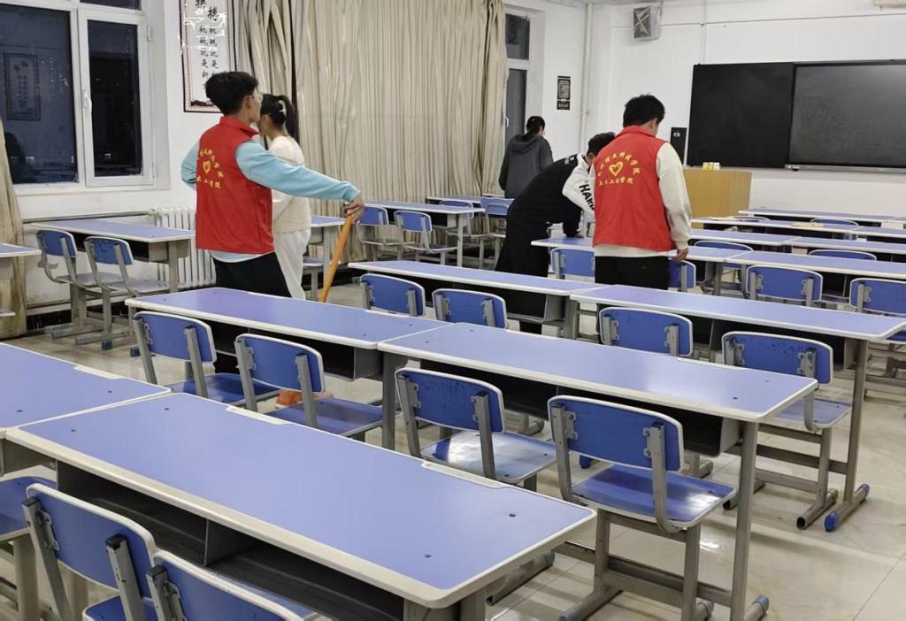 9月22日在北校区综合教学楼9、10楼,土木工程学院组织学生志愿者开展“洁净教室·共筑文明”主题卫生清扫活动。活动以“劳动育人”为出发点,通过志愿者实践清扫,目的在于优化师生学习与生活环境,将教室打造为窗明几净、舒适有序的学习空间,同时深化劳动育人理念。