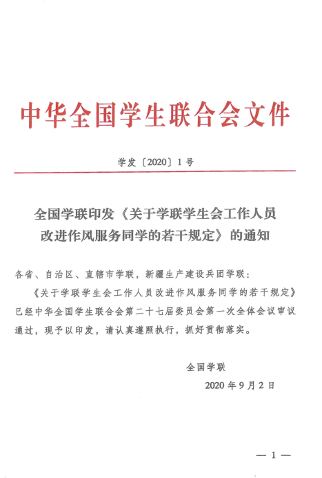 全国学联印发《关于学联学生会工作人员改进作风服务同学的若干规定》的通知