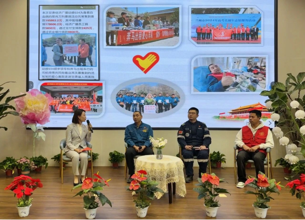 荣获中国青年志愿者优秀个人、全国最美出租车司机、甘肃优秀共产党员等33项荣誉的兰州奔马雷锋车队党支部书记苏彪分享了12年来公益之路的初心与坚守。他带领团队成立“雷锋车队”,相继开展“远光灯照亮乘客回家路”“免费接送中高考学生”“拾金不昧”“无偿献血”“爱心募捐”等爱心活动;荣获全国学雷锋志愿服务“四个100”先进典型、全国春运“情满旅途”活动成绩突出个人、甘肃省最美红十字志愿者的鲁子玮分享了在“暖冬行动”“无偿献血”等方面的爱心事迹。他带领团队打造的《再生电脑教室》项目,为偏远地区孩子们送去了“科技之窗”;我校康学海同学讲述了自己在地震灾区积石山县宋家沟村安置点,开展志愿服务活动的经历和感悟。从他们点点滴滴的事件中,让在场的师生深刻感受到了他们平凡而又伟大精神,也从中感受到了志愿精神的力量。