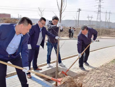 活动过程中,老师和同学们积极参与,开始栽种提前准备好的银杏树苗,植树过程中同学们彼此合作,互相帮助,大家都展现出不同一般的热情,积极的完成了植树工作。一个个树坑的挖成,一棵棵树苗的栽下,象征着一份份绿色的希望;每一滴汗水的流下,每一铲泥土的填充,则代表着每一个人的奉献与爱心。