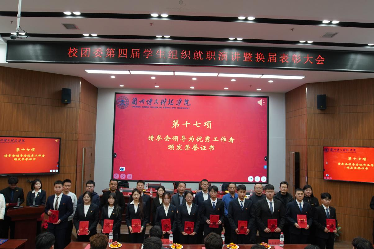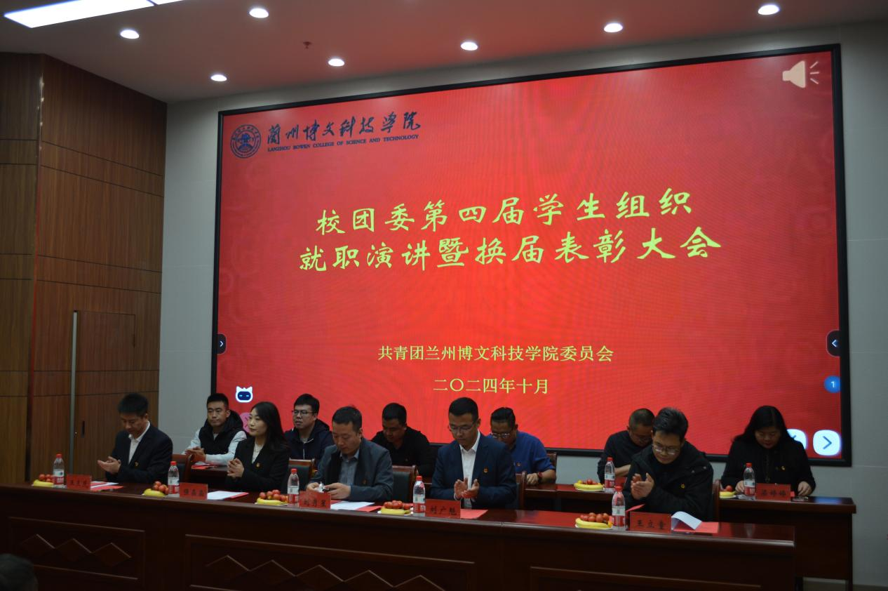 为加强学生组织建设,优化学生干部队伍结构,提升学生组织的工作能力。2024年10月22日,校团委在综合教学楼12楼大报告厅召开第四届学生组织就职演讲暨换届表彰大会。学生处处长刘秀星、校团委书记强晶晶、学生处副处长刘广魁、王立童、王正茂,各二级学院学生管理副院长,校团委老师及部分学生代表参加了本次大会。