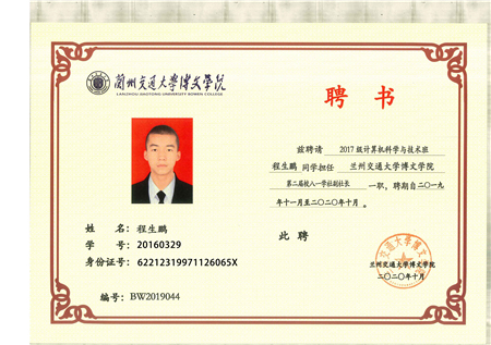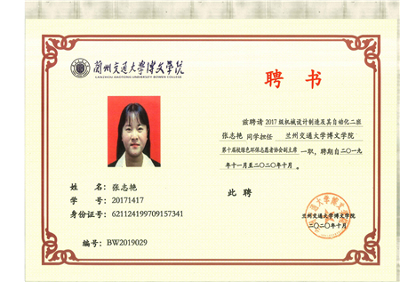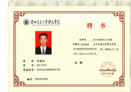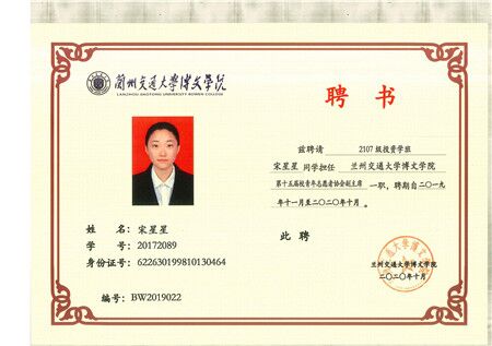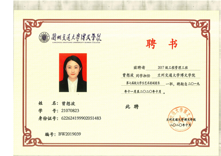 共青团兰州交通大学博文学院委员会2019-2020年度学生干部聘任名单