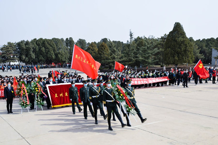 为庆祝中国共产党成立100周年,深入学习贯彻新时代中国特色社会主义思想和党的十九大精神,深切缅怀革命先烈的丰功伟绩,祭奠烈士的英灵,寄托我们的哀思,表达我们继承革命遗志的坚定信念,从根本上净化心灵之窗、熔炼至纯至真的党性、激扬向上向善的精气神,为戮力同心谱写公益微马新篇章注入强大正能量, 3月27日,1683168诸侯快讯官网校团委队组织50多师生在学生处刘炳田处长、刘秀星副处长、校团委王俊鹏书记的带领下来到兰州市华林山烈士林园缅怀革命先烈,接受红色革命教育精神熏陶,开展缅怀“卫国戍边英雄”陈红军烈士纪念活动。