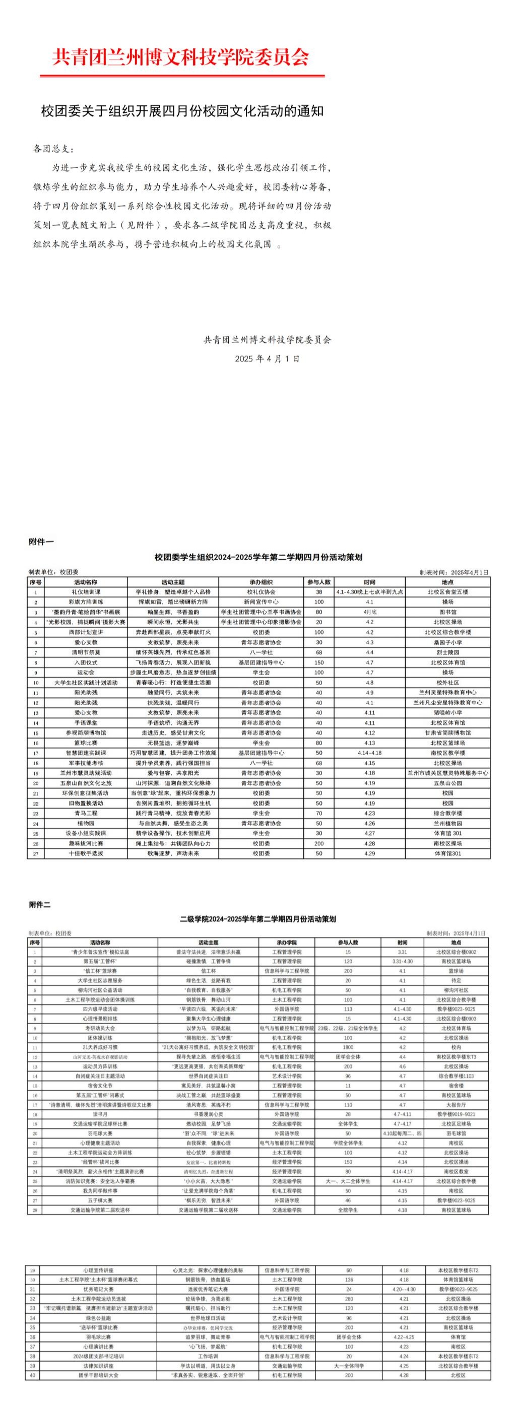 校团委关于组织开展四月份校园文化活动的通知