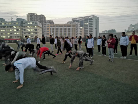 每周周二周四早上六点四十五,晨跑活动在班长的组织下井然有序的进行,成为早晨校园里一道亮丽的风景线。晨跑结束后由班长带领学员做拉伸运动,教他们做最基本的单个军人队列动作,虽然只有早晨短短的一个小时训练时间,但是每个学员都认真学习,听从指挥,努力做好每一个动作。