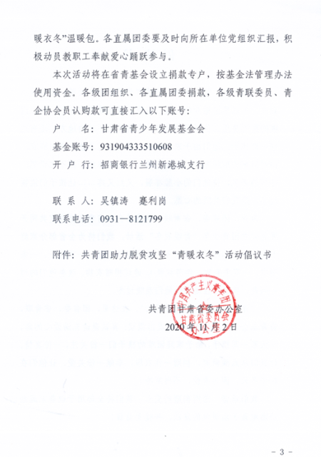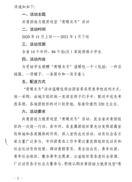 关于继续组织开展2020年度共青团助力脱贫攻坚“青暖衣冬”活动的通知