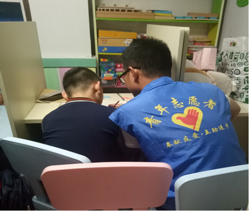 今天下午,志愿者们在老师的安排下,对孩子们进行了课程教学,以及画画、粘豆等艺术手工课的教学,对于特殊的孩子来说,也许完成一幅别人看不懂的画作会花很长时间,但每一个孩子却能从中找到快乐;他们在学习方面的理解和记忆能力还比较差,这就需要我们每一位志愿者有耐心的去给他们讲解,或通过一些身边简单易懂的事物去做例子,这样能更好的促进他们对于学习上的兴趣。虽然他们有些不一样,但是在每一次活动中他们的自信和热情感染了我们,让许多参加了活动的人们都能一下子认出他们,与他们友好的进行交谈,有些孩子说话可能不太清楚,但都愿意倾听他们的话语。相信孩子们也感受到了太多人带给他们的爱和温暖,未来,将有更多人会去和老师一起关注孩子们快乐成长。