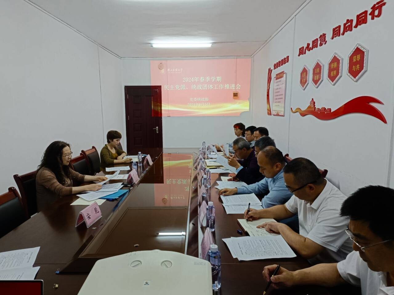 6月5日,统战部在党派团体楼会议室召开2024年春季学期党派团体工作推进会,学校各民主党派、统战团体负责人参加会议。会议由统战部常务副部长丁莉主持。