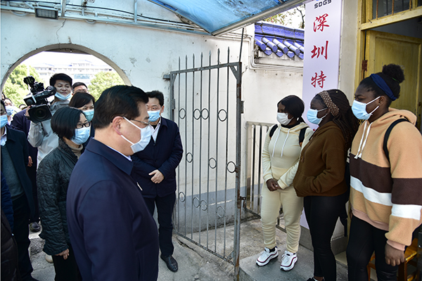 3月4日,副省长、州委书记柯俊到金年会调研开学运行情况,指导疫情防控工作,州政协主席、金年会党委书记吴建清,党委副书记、校长顿祖义,州委常委、州委宣传部部长张淼,一级巡视员郑开国,副州长高敬佩,金年会党委常委、副校长祝建波,副校长秦群燕陪同调研。