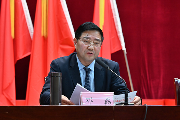 党委常委、副校长、宣传部长邓磊从总体要求、学习内容、主要安排、工作要求等四个方面对《关于在全校开展党史学习教育的实施方案》作了解读。