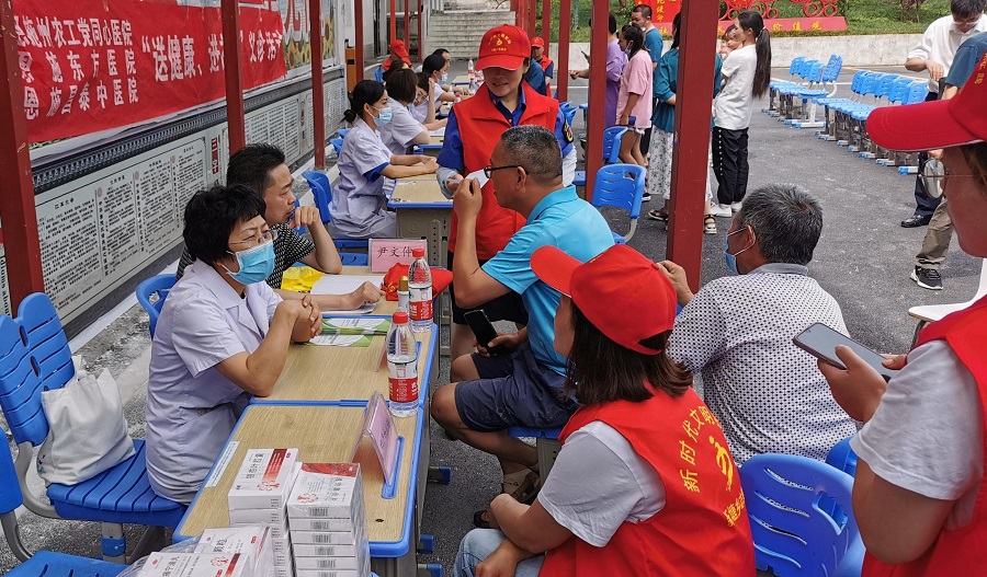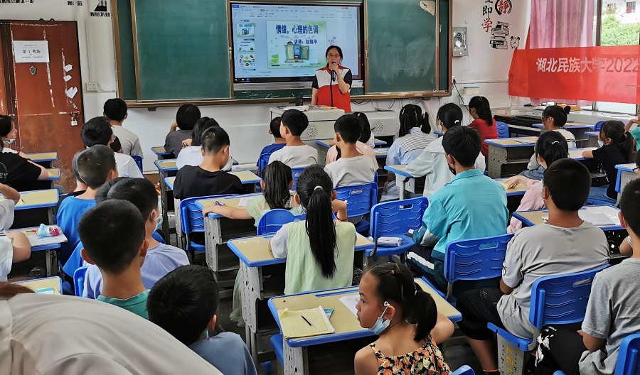 上午的活动在双河初级中学进行。jinnian金年会附属民大医院、恩施昌泰中医医院、恩施东方医院、恩施爱尔眼科医院的中医、儿科、妇科、内科、骨科、眼科等专科医生组成的医疗专家团队为社区居民开展了送医送药义诊活动,现场共接诊370人次,免费发放常用药品价值3500余元;妇产科主任医师陈宏芳教授现场为社区妇女健康咨询,在教室为学生家长举办了一场关于“妇女健康知识”的专题讲座;国家二级心理咨询师赵锦华副主任医师为留守儿童集中开展了心理辅导,帮助孩子进行自我识别和化解日常生活中的不良情绪,并用实验心理学中的“绘图法”进行了儿童心理健康筛查。