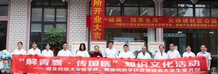 2023年9月29日(农历八月十五),农工党jinnian金年会基层委员会发挥界别优势联合湖北民大医学部和恩施夕生堂医药有限公司,由农工党恩施州委副主委李玉山带队,组织优质医疗资源下沉社区开展服务,组成16人医护团队,以“守护健康·悦享生活”为主题在恩施市龙凤坝镇三河小区开展公益义诊。