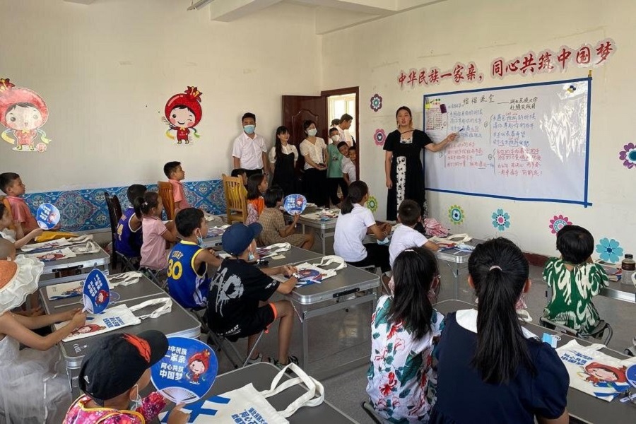 “同心石榴”赴疆实践团队成员讲授音乐课