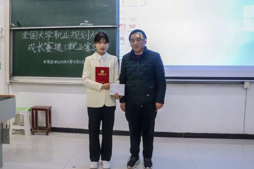 本网讯(记者 曾周颖 余馨瑶(见习)/文 记者 赵含韵 刘诗怡/图 )11月25日,以“筑梦青春志在四方,规划启航职引未来”为主题的全国大学生职业规划大赛文传初赛在文传楼附101、102教室举行。我院团支部书记穆小雪,老师谭宪,研究生黄金艳受邀出席并担任评委。谭宪老师为就业赛道一等奖颁奖谭宪老...
