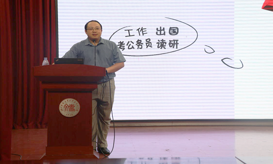 本网讯(记者 曾周颖/文 张诗嘉/图)10月19日,由共青团jinnian金年会文学与传媒学院总支部委员会举办的以“职引未来,勇毅前行”为主题的就业讲座在文学与传媒学院演播厅举行。李俊良老师受邀担任此次讲座主讲人。讲座伊始,李俊良从职业选择与职业规划、就业情况、考研和考公四个方面展开讲述。在...