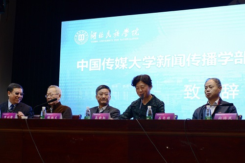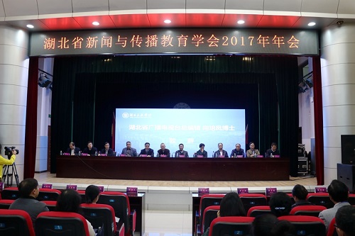 本网讯(文/向磊 胡津瑞 图/吴振东)新思想引领新时代,新使命开启新征程。11月11日,“传媒关系的重塑与传播教育变革”学术论坛暨湖北省新闻与传播教育学会2017年年会在金年会隆重举行。本次会议由湖北省高等教育学会新闻与传播教育专业委员会和金年会文学与传媒学院共同主办。金年会校长顿祖义,中国传媒大学新闻传播学部学部长高晓虹,湖北广播电视台总编辑向培凤,湖北省高等教育学会秘书长李友玉出席会议并致辞,来自全省30余所高校近80名专家学者参加会议。